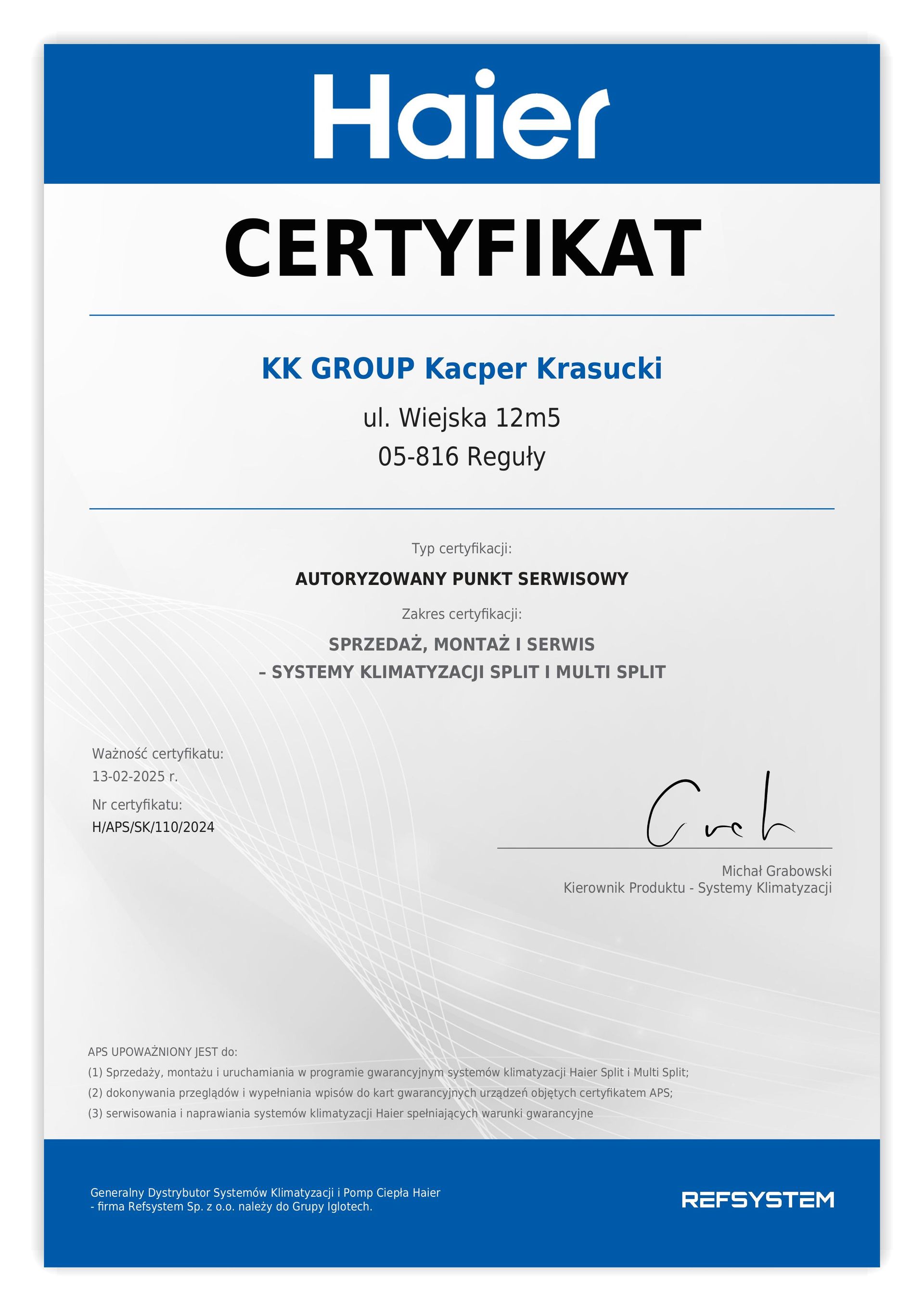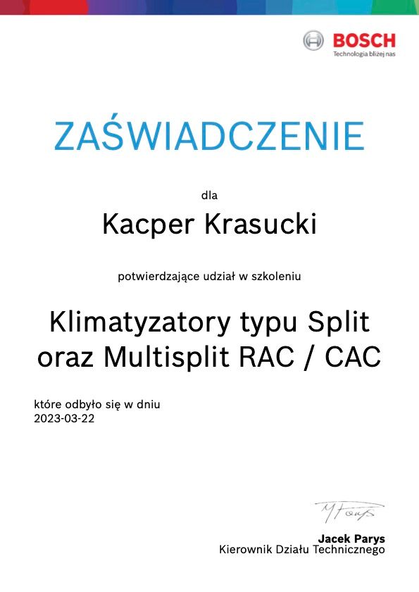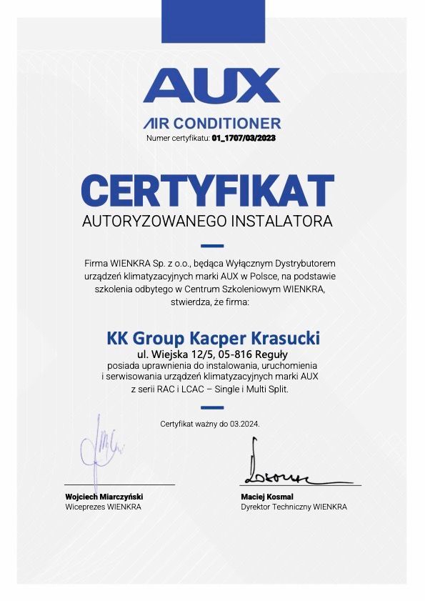oferuje Państwu systemy klimatyzacyjne do mieszkań, domów, obiektów handlowych, biur. Wykonujemy wszystkie rodzaje instalacji tj.: SPLIT, MULTISPLIT, mini VRF oraz VRF. Korzystamy z urządzeń renomowanych producentów, Posiadamy wszelkie aktualne wymagane certyfikaty oraz uprawnienia niezbędne do wykonywania usług klimatyzacyjnych.